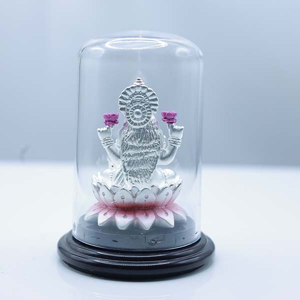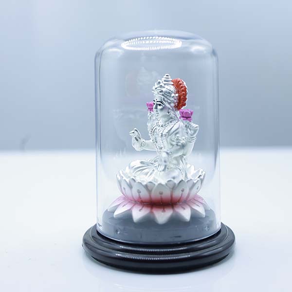 999 Pure Silver Goddess Lakshmi Idol with Glass Dome Display