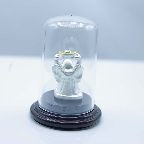 999 Pure Silver Laughing Buddha Idol with Glass Dome