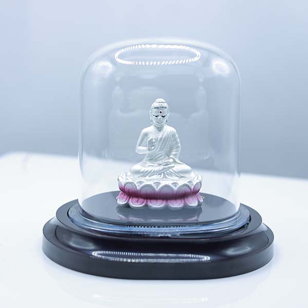 999 Pure Silver Lord Buddha Idol with Glass Dome Display