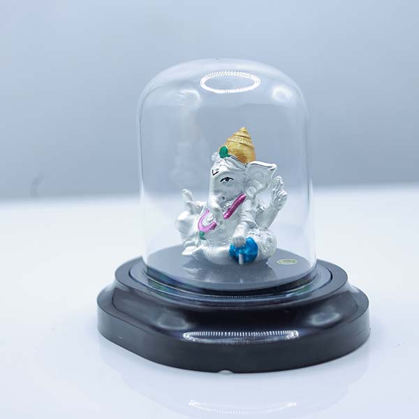 999 Pure Silver Lord Ganesha Idol with Glass Dome Display