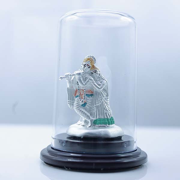 999 Pure Silver Radha Krishna Idol with Glass Dome Display