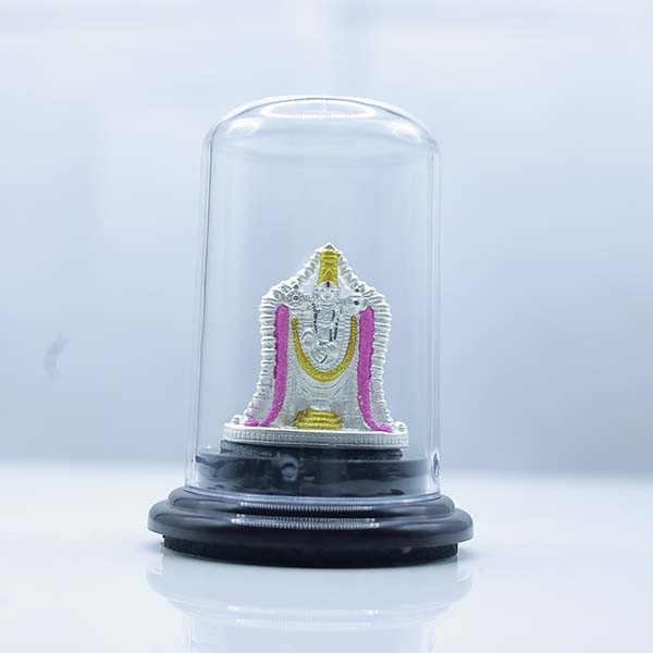 999 Pure Silver Thirupathi Balaji Idol with Glass Dome Display