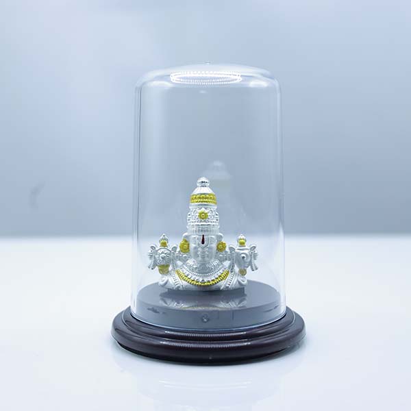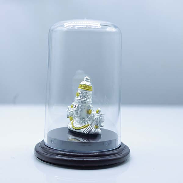 999 Pure Silver Tirupati Balaji Idol with Glass Dome Display
