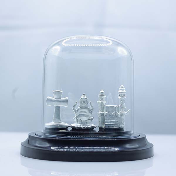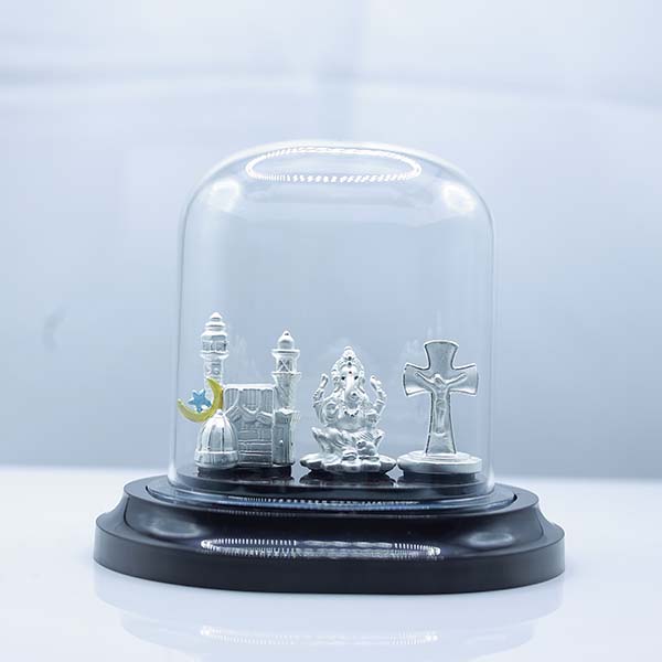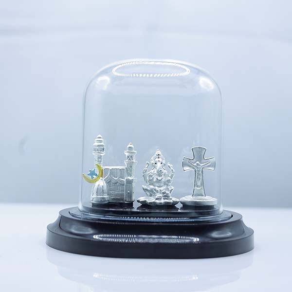 999 Pure Silver Unity of Faiths Dome – Temple, Mosque, Church & Ganesha Display